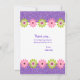 End your celebration off right with this glittery, bright invite. It's perfect for any age or party thank you. It has bright purple glitter background on the top and the bottom of this thank you. Along the top & bottom there is a row of five (5) flowers alternating in colours of pink then green. Check out this line in thank you notes, labels, shirts & more.
