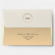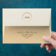 Simple, elegant, modern, luxury chic black and gold glitter wedding 5x7 envelope with return address and monogram at the top flap.