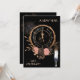 Here's an elegant gold and black invitation for your New Year's eve Party invitations. The front holds an image of a gold glitter frame clock that is just ready to strike the hour of midnight. At the bottom is a pink and gold lined black flower bouquet. At the top corner is an image of fireworks, and at the bottom right is a glass of bubbly champagne.The back of the invitation has a gold fireworks display and plenty of room for your own custom text in gold. Elegant!
