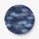 Glitter Gold Stars Dark Blue Sky Pattern Paper Plate