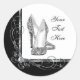 Elegant black and silver glitter high heel shoe stickers. You can add the text in the font style and colour of your choice and choose your size and shape on this pretty black high heel shoe sticker.