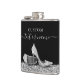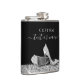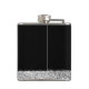 Personalised flask with silver and black glitter high heel stiletto women's shoes and custom elegant script name, monogram, or event slogan or motto.