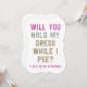 Propose to your bridal party with this glamourous and sparkling card that says "WILL YOU HOLD MY DRESS WHILE I PEE? PLEASE BE MY BRIDESMAID." Personalise with a heartfelt message on the back. The faux Pink, silver and gold glitter is printed flat. Opt for a diecut shape or textured paper to make it extra special for your girls :)