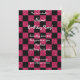 Glitter hot pink and black chequered pattern invitation