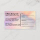 This is the perfect gift certificate business card for a trendy, stylish, girly, and modern businesswoman. This design features simple black brushstroke typography on a faux printed pink glitter with pink, peach, blue, and purple iridescent ombre gradient glamourous and chic background. It's the perfect way to allow your customers to buy a gift for their family and friends and at the same time promote your business.