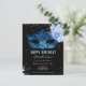 Girly glitter with fancy script name typography. Blue Roses and faux glitter border. Fancy blue masquerade mask. Great for quince celebrations. All text is adjustable. Beautiful floral and faux glitter sparkle design.