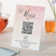 Versatile and Energetically Enhanced Promotional Branding PASTEL LIGHT CORAL BLUSH PINK GLITTER to WHITE business company MENU tabletop pedestal sign.