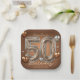 Celebrate their 50th in style with this eye-catching paper plate! The design showcases the number "50", a dazzling focal point, crafted with shimmering bronze glitter and sleek silver accents, truly popping against the backdrop. Metallic balloons in warm bronze and sophisticated silver add to the festive feel. All these celebratory elements are set against a rich, inviting chocolate brown background. Remember, all text is completely customisable to make it uniquely theirs!