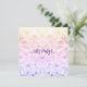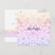 Flat card party invitation with a fun, bubbly faux glitter design in purple, pink and yellow ombre and "Let's Party" on the front. Party details on the back with full customization available to suit your event.