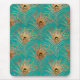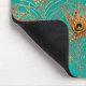 Pretty gold glitter peacock feathers pattern on aqua background.