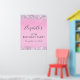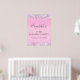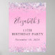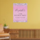Pretty and girly 13th birthday party welcome poster and photo prop with sparkly holographic purple, pink and silver faux glitter confetti along the borders against a pink background and her name in a soft grey trendy script.