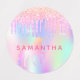 A trendy rainbow coloured, iridescent background with unicorn and rainbow pastel colours in pink, purple, rose gold, mint green. Decorated with faux glitter drips in rose gold, pink and purple and a rainbow coloured unicorn. Personalise and add a name. Pink coloured letters.
