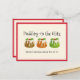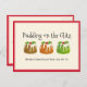 Fun, festive Glitter Pudding Christmas card, showing a trio of faux glitter Christmas plum puddings. The main text reads PUDDING ON THE GLITZ, which is a play on the name of a well-known song and phrase.The smaller text reads MERRY CHRISTMAS FROM ALL OF US. On the reverse, there is a placeholder festive greeting. All text is CUSTOMIZABLE, so you can tweak/replace the text as you wish, including adding your business name on the front, and personalising the greeting on the reverse. This would be an ideal Christmas greeting postcard for your business clients, company suppliers, corporate neighbours, friends, etc. Part of the CHRISTMAS PUDDING Collection with cards, clothing, home decor and gifts by Berean Designs.
