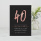 Celebrate 40 years with this black and faux rose gold glitter invitation featuring a large stylised 40