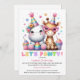 Glitter Safari Birthday party Cute Giraffe & Hippo Invitation