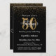 Glitter & Script 50 & Fabulous on Black, Birthday Invitation