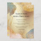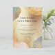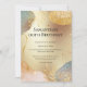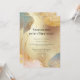 This modern, contemporary and abstract digital design comprises of gorgeous faux gold, turquoise, pink and blue shimmering abstract shapes that appear to sparkle and shine. Delicate faux gold strands and dots are scattered across them and a hand drawn leaf outline appears at the top and bottom edge. All elements are set against a faux gold background. These are ideal for birthday, wedding, engagement and anniversary announcements and parties.