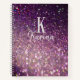 Glitter sparkle monogram script name purple recipe notebook