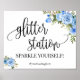 Change note and hashtag to the template, for additional changes (font colour, font style, remove or move elements, change wording *Glitter, Station words are not editable but colour can be changed), click on personalise, scroll down and click on link "click to customise further".