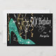 Glitter Stiletto Champagne 50th Birthday Teal Invitation