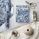 A vibrant roll of wrapping paper covered in colourful shimmering confetti patterns.