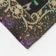 Elegant Glitter Trimmed Gold Music Notes Design Fleece Blanket. A frame of gold decorative flourishes and musical notes and a rainbow coloured glitter effect trim around the edges.