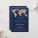 Glitter World Map Confetti Navy Blue Retirement Invitation