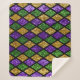 Shiny green, purple and golden glittering paillettes diamonds background pattern fabric with empty space for copy, room for text. Mardi Gras holiday poster decor.