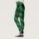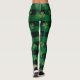 These leggings feature a vibrant and festive pattern combining classic plaid with sparkling shamrocks. The design consists of alternating green and black squares, some of which are filled with diagonal stripes, creating a dynamic and eye-catching background. Scattered across the plaid are glittering green shamrocks, adding a touch of sparkle and charm. This unique combination of traditional plaid and glittery shamrocks makes these leggings perfect for celebrating St. Patrick's Day or adding a bit of festive flair to any outfit.