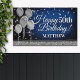 Fun banner sign for indoors or out, featuring some glam metallic balloons and glittery confetti on a rich textured royal blue background for your personalised birthday banner.