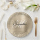 Glittery Champagne Foil Fancy Monogram Paper Plate