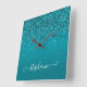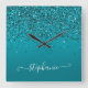 Glittery Dark Turquoise Gradient Girly Calligraphy Square Wall Clock