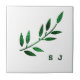 Glittery Emerald Green Leaf Monogram Gift Favour Ceramic Tile