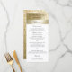 Elegant modern glittery gold stripe wedding menu card design.