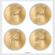 If you keep the extra large 14x14" size... the individual circle shapes are approximately 6" in diameter. I approximate the size looking at the grid in the system, so the circles may be a slightly off 6 inches. The background features digital art gold glitter and golden faux metallic foil that prints like a photo. Create your own four different fancy calligraphy monogram stickers. If you do use different letters, you may notice that some of the letters have so much flourish you may want to re-centre that letter on the individual sticker. You can also increase the font size for the names as needed.