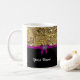 PERSONALIZE this stylish elegant girly glittery sparkly gold swirly modern abstract beaded & pearl bling pattern and hot pink magenta bow and ribbon, on black with your own text, name or monogram, initials .