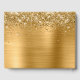 Girly faux sparkly gold glitter on the top and bottom edge, over a faux golden yellow brushed metal or stainless steel style ombre foil.