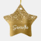 The girly glitter glam prints like a photo on this star shaped ceramic holiday ornament.