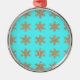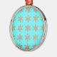 Glittery Gold Snowflakes Patterns Turquoise Blue Metal Ornament