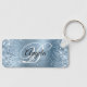 Glittery Light Blue Foil Fancy Monogram Key Ring