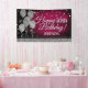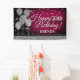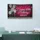 Fun banner sign for indoors or out, featuring some glam metallic balloons and glittery confetti on a rich textured pink background for your personalised birthday banner.