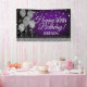 Fun banner sign for indoors or out, featuring some glam metallic balloons and glittery confetti on a rich textured deep purple background for your personalised birthday banner.