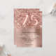 Create your own faux rose gold glitter and foil 75th birthday celebration 5x7 flat invitation for her.