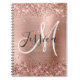 Glittery Rose Gold Foil Black and White Monogram Notebook