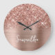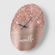 Glittery Rose Gold Glam White Script Name Large Clock