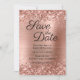 Faux rose gold glitter save the dates.