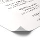 My thoughts on this product was excellent. Well printed in a gloss finishing and just the size l ordered. It arrived in good condition and am overall satisfied with the product. The printing turned out great. I was quite surprised with the finishing touch to the poster. The semi gloss was just right and a perfect size to display at the wedding.