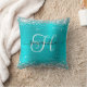 Glittery Silver and Turquoise Blue Monogrammed Cushion