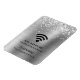 Faux sparkly silver glitter against a coordinating faux shiny brushed metal foil graphic image.