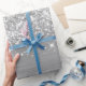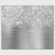 The background features large faux silver glitter and faux brushed metal silvery grey foil.
